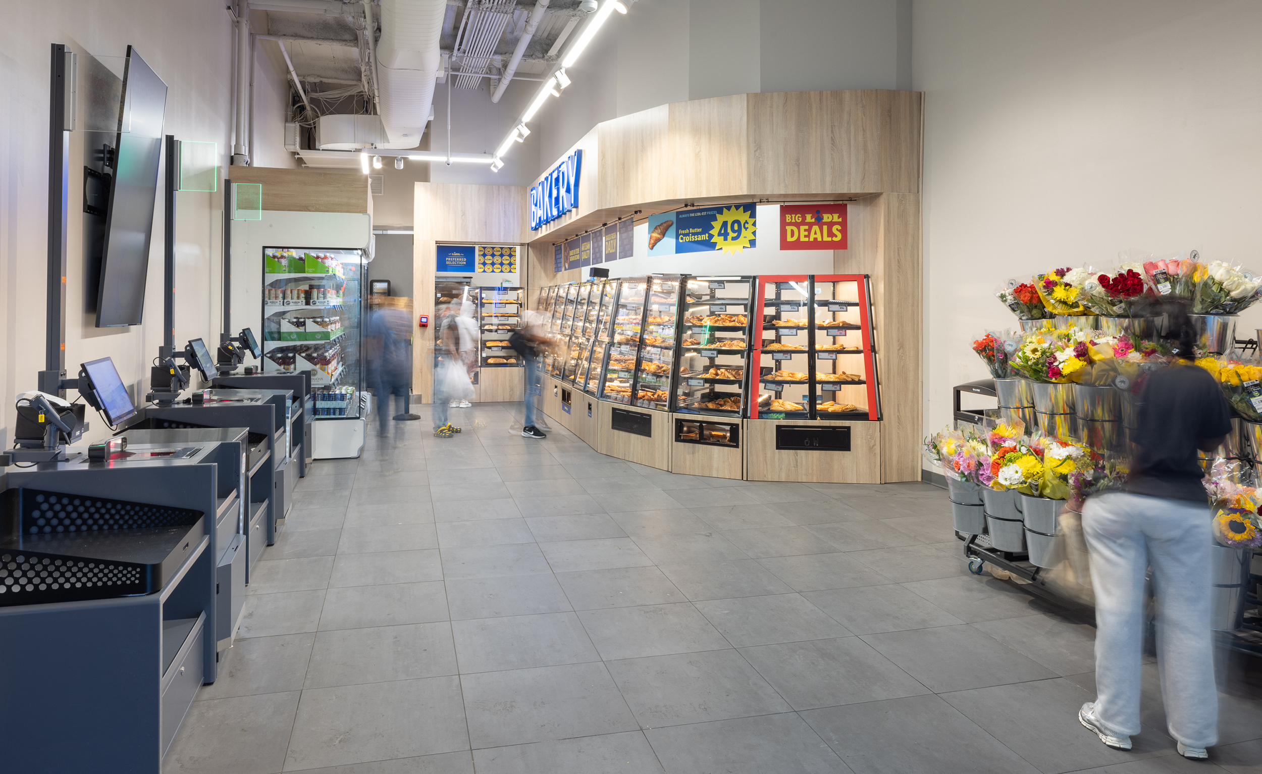 CM&B partnered with Lidl US to deliver a 30,000-SF urban grocery store in the heart of downtown Brooklyn, transforming a former Raymour & Flanigan showroom into a two-level food destination. With a first-floor bakery and floral department leading to a full supermarket on the second floor, the project reimagines the grocery experience for NYC shoppers.